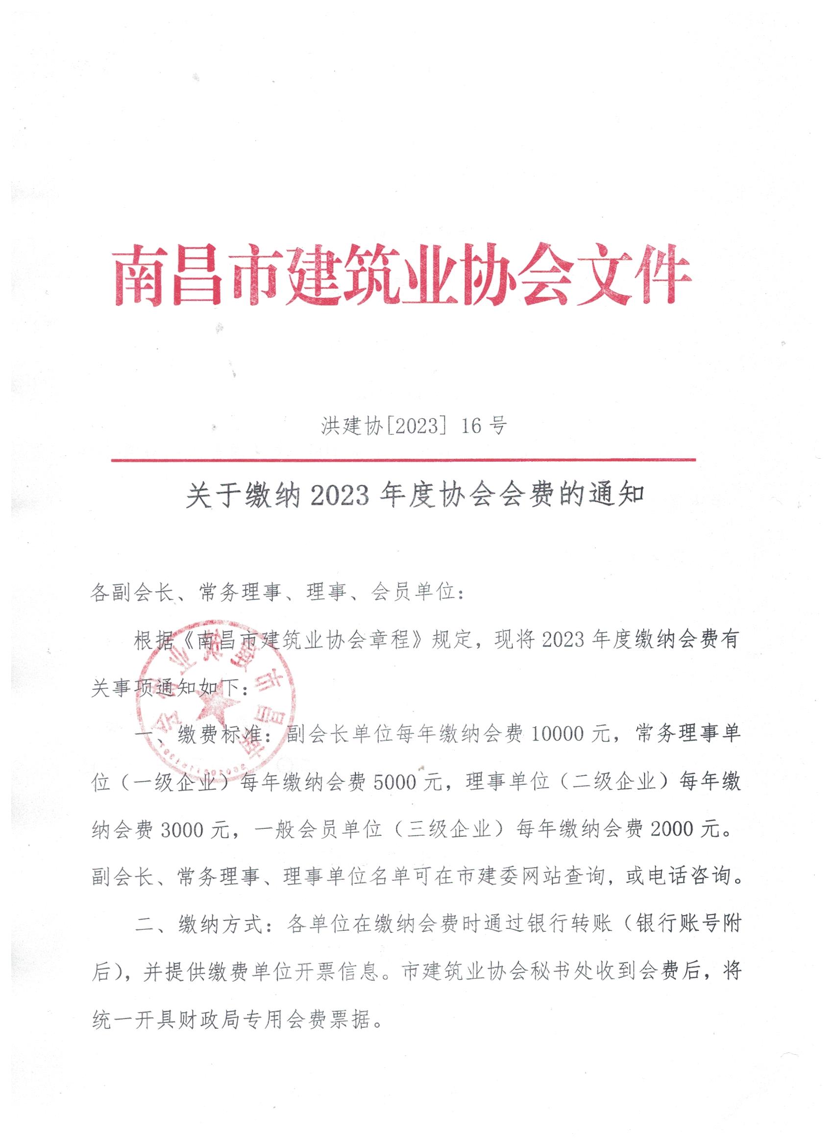 南昌市建筑業(yè)協(xié)會關(guān)于繳納2023年度協(xié)會會費的通知