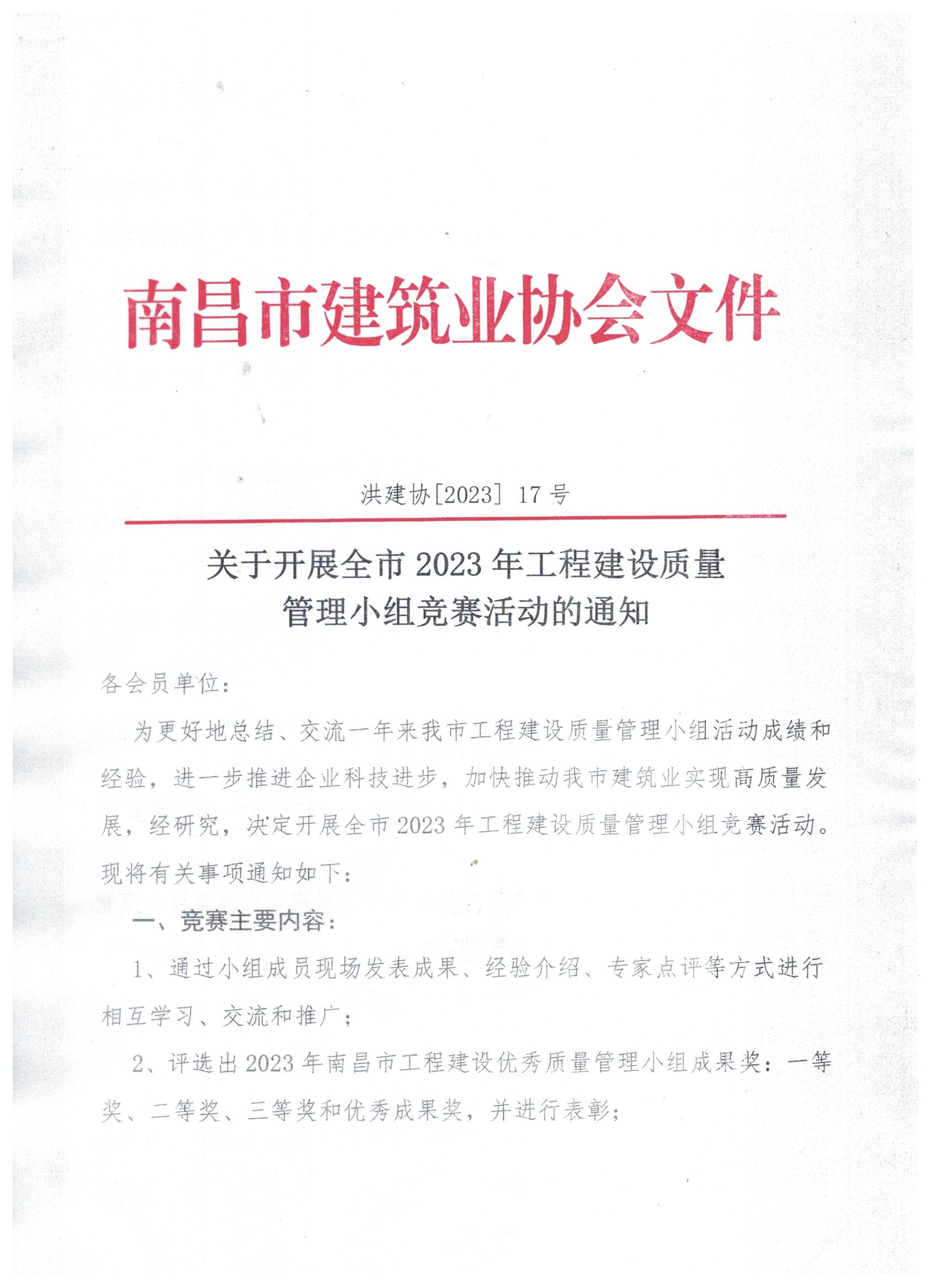 關(guān)于開展全市2023年工程建設(shè)質(zhì)量 管理小組競(jìng)賽活動(dòng)的通知